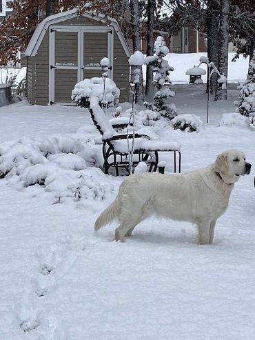 At Lakeside Pines, we prioritize the health and happiness of our English Cream Golden Retrievers. Our breeding program focuses on producing well-tempered and healthy puppies that meet the highest standards. AKC registered, vet checked, vaccines, de-wormed. BOTH PARENTS have been DNA tested for genetic diseases and are CLEAR. OFA results: good. At 3 weeks we introduce the pups to crate training and begin potty training at this time as well. Temperament testing at 7 1/2 weeks allows us to best place the right pup with the right family. All pups are born and raised indoors with mom and are well socialized by our family. We have an open-door policy with our clients and believe in transparency. We will always do our best by you and your new family member!
